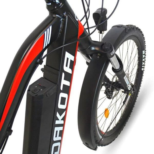 Le VTT électrique Dakota FE est équipé de feux arrières et avant, porte-bagages et gardes-boue. Il combine puissance, durabilité et fonctionnalité. Un VTTAE conçu pour les amoureux de la nature, capable de vous faire parcourir tous les chemins.